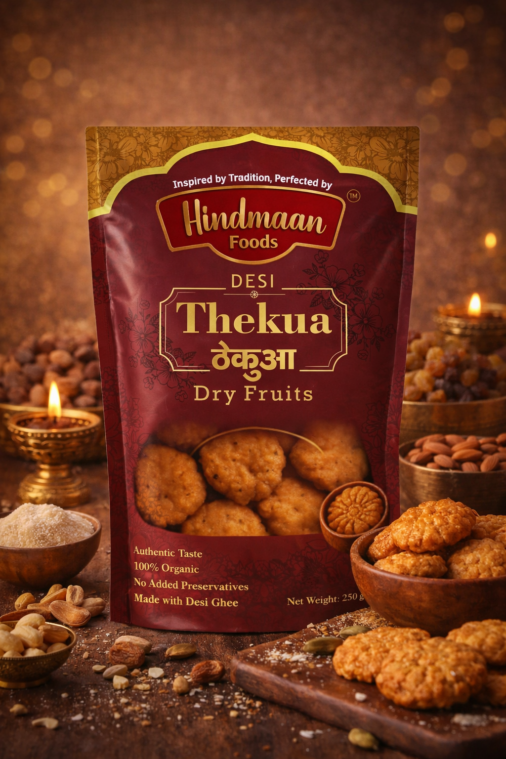 Hindmaan Foods Thekua Dry Fruits is a premium handcrafted sweet made using authentic recipes and enriched with a generous mix of high-quality dry fruits. This luxurious treat offers a delightful blend of crunch, aroma, and rich flavor, making it perfect for special occasions, gifting, and festive celebrations.